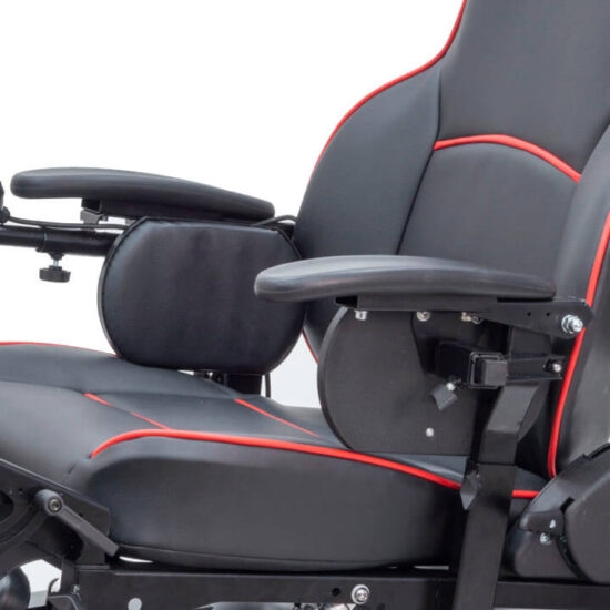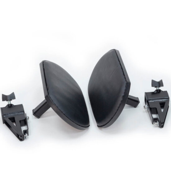 Подушки поддержек имеют пластиковый каркас с одной стороны и мягкую вставку обшитую экокожей с другой. Подушки установлены на штангах для регулировки ширины. Направляющие для подушек крепятся на стойки подлокотников. При пересаживании подлокотник можно вытащить вместе с поддержкой. Длина подушки 22 см, ширина 14 см.