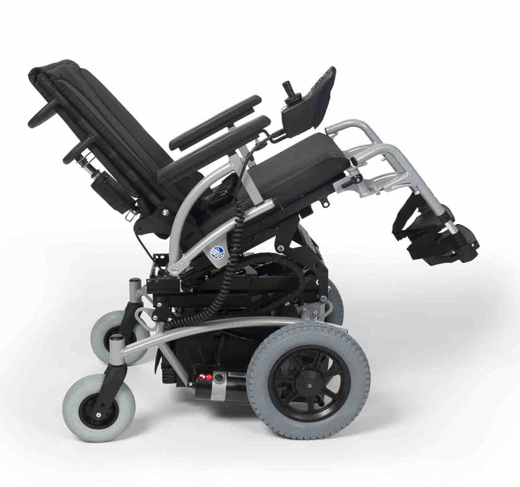 В данной модели есть возможность установки заднего привода. По желанию клиента кресло-коляску можно оборудовать специальной функцией электрических регулировок наклона сидения,спинки и ортопедических подножек.