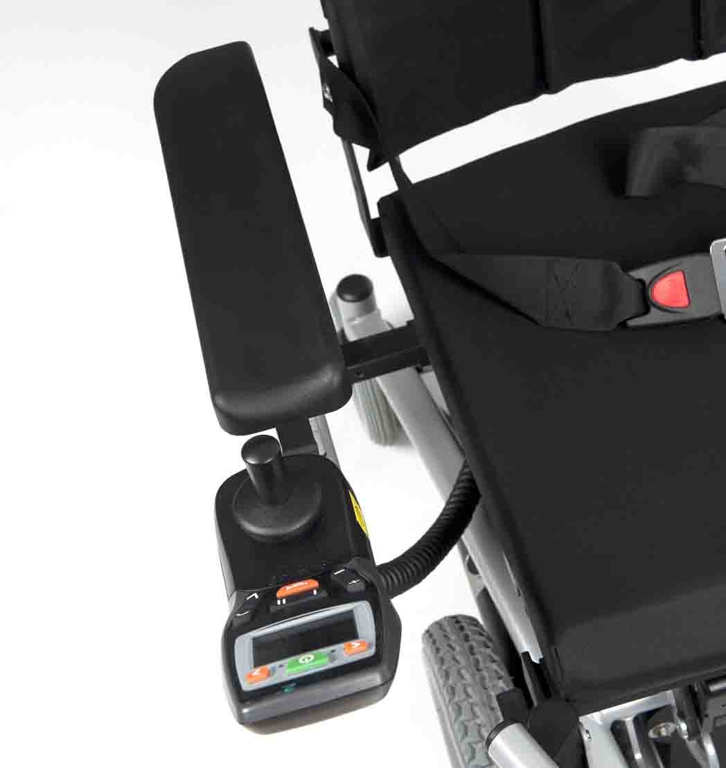 В комплектацию коляски входят регулируемые по высоте подлокотники и съемные подножки. В зависимости от физического состояния пользователя можно оптимально подстроить ширину, высоту и глубину сидения и угол наклона спинки до 40°. Для управления движением коляски используется легкий и надежный для пользователя пульт управления-джойстик, который может устанавливаться как под правую, так и под левую руку.