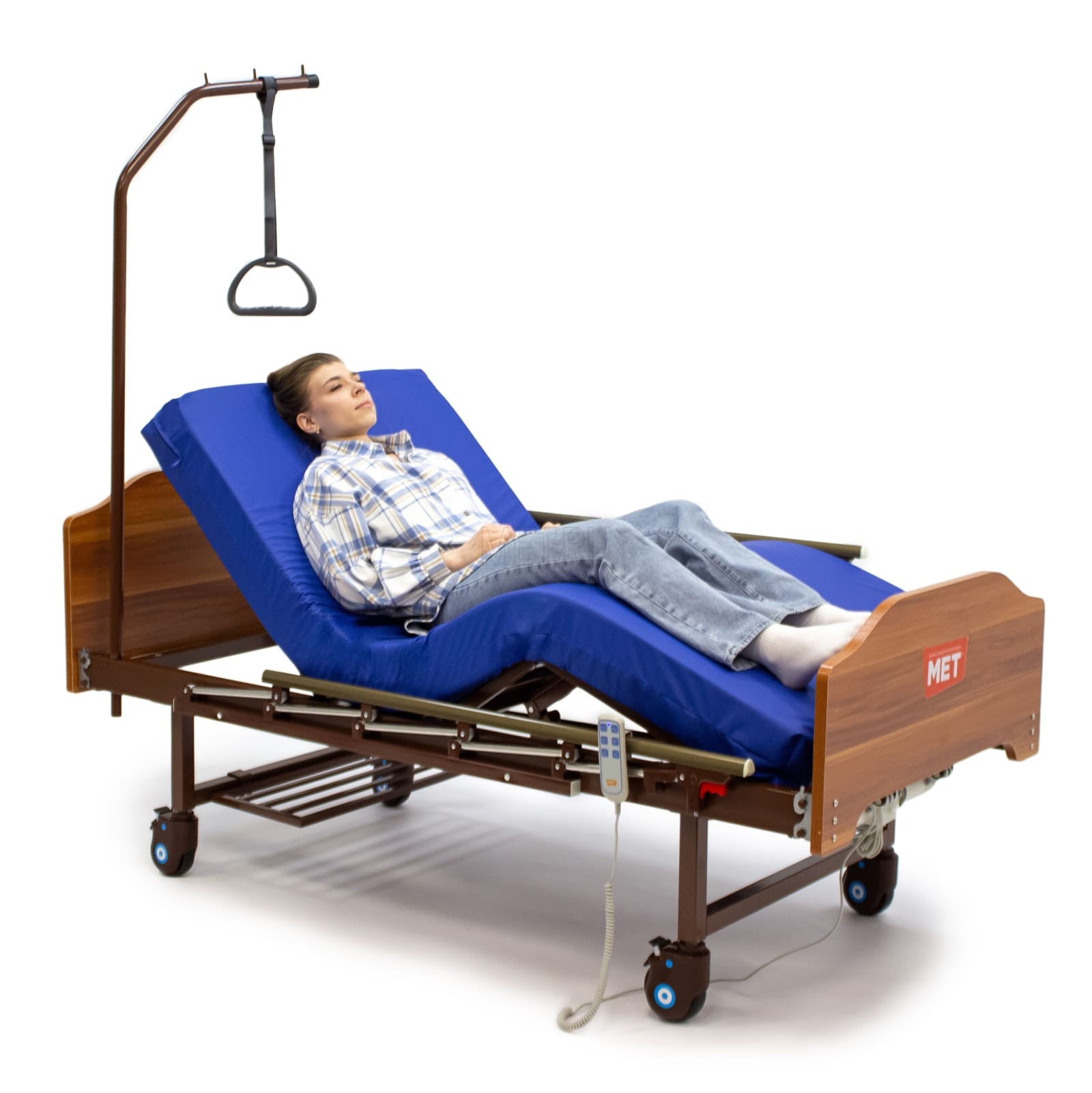 Функционал кровати позволяет поднимать голову и спину, а также опускать и поднимать ноги. Пациент может самостоятельно менять свое положение с помощью пульта управления.