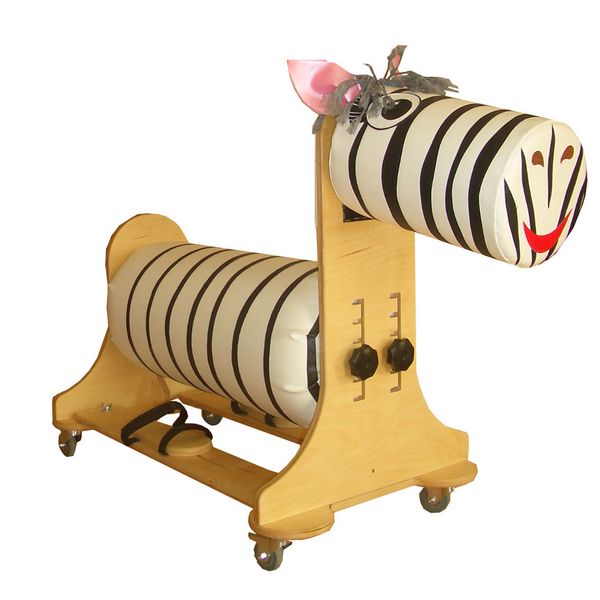 Сидение в виде абдукционного валика, регулируемое по высоте, со спинкой. Сидение может быть установлено с определенными углами наклона вперед-назад. Сидение установлено на вертикальных стойках, оснащенных колесами с тормозами. На стойках крепятся съемные подножки с креплениями для стоп типа «сандалии». Крепления для стоп имеют регулировки для наиболее удобного расположения ног ребенка. Съемная «голова зебры» может быть использована и как игрушка для отвлечения внимания ребенка во время реабилитационных процедур, так и как валик для различных занятий и упражнений.