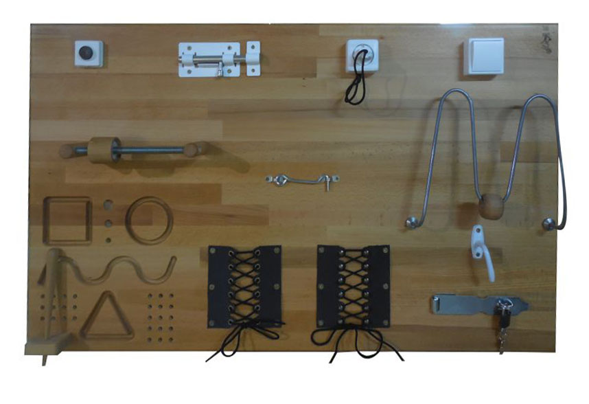 Панель из натурального дерева с 13 тренажерами, имитирующими повседневные движения верхних конечностей. Применяется для упражнений, восстанавливающих и корректирующих движения верхних конечностей от плечевого до пястно-фаланговых суставов, для занятий со всеми возрастными группами пациентов (дети от 5 лет, подростки, взрослые, гериатрические пациенты).