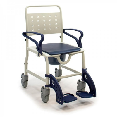 Также модель оснащена пластиковым съемным санитарным судном, которое находится под сиденьем. Оно легко моется, а одноразовые гигиенические пакеты делают уход за больным еще проще. При необходимости судно можно снять, а кресло разместить над унитазом. Ручка на спинке предназначена для перевозки пациента на стуле сопровождающим. Подножки кресла-туалета можно снять.
