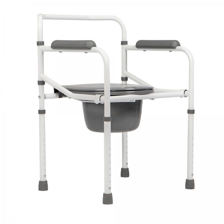 Прочный санитарный стул удобный для хранения и транспортировки со съемным стульчаком с крышкой.