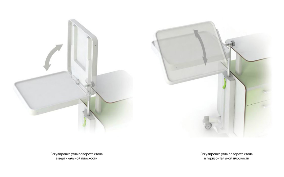 Тумбочка СН 300.00.04 (прикроватная с подъемно-поворотным столиком со столиком для аппаратуры)