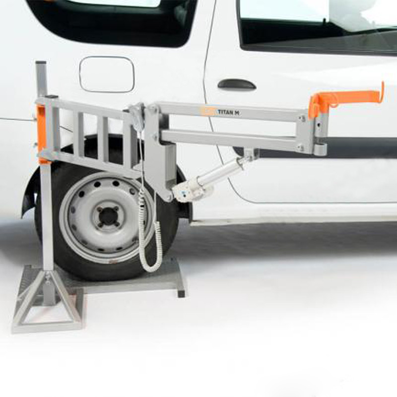 Кронштейн "Автомобильный" является универсальным за счет своей конструкции и регулировки высоты подходит для использования в большинстве легковых автомобилей. Не требует ни каких внесений изменений в конструкцию автомобиля, фиксация происходит за счет наезда на платформу колесом, весь вес автомобиля при этом выполняет роль противовеса. Сам кронштейн разборный, помещается в багажник практически любого автомобиля.