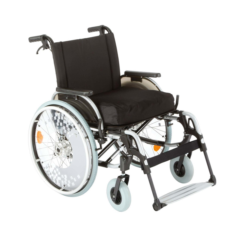 Усиленная крестообразная рама, рассчитанная на повышенные нагрузки, обеспечивает безопасную и комфортную езду, а специальное стабилизирующее устройство рамы делает конструкцию ещё более крепкой и устойчивой. Адаптер приводного колеса позволяет настроить коляску по индивидуальным потребностям пользователя.