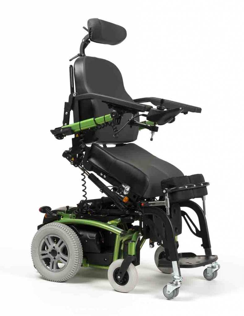 В комплектацию коляски входят регулируемые по высоте подлокотники и съемные подножки. В зависимости от физического состояния пользователя можно оптимально подстроить ширину, высоту и глубину сидения, а также угол наклона спинки. Для управления движением коляски используется легкий и надежный для пользователя пульт управления-джойстик, который может устанавливаться как под правую, так и под левую руку.