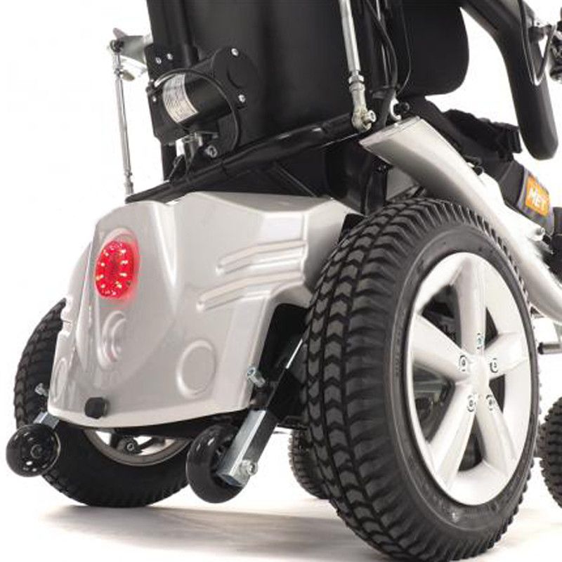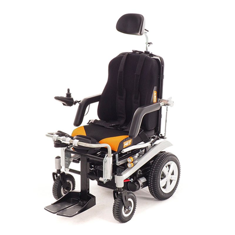 Кресло-коляска с электровертикализатором MET VERTIC сочетает в себе функции электрического кресла-коляски и электроприводного вертикализатора и выполнено в современном спортивном дизайне. Ортопедическое сиденье в съёмных чехлах из 3D-сетки Air Mesh - это оптимальное решение для крупных пациентов, т.к. AirMesh, это лучшее на рынке влагоотведение. Для первых вертикализаций, зачастую связанных с болью, спинка и сиденье из такого нейлона окажутся комфортным подспорьем.