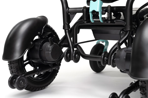 - 200 мм передние и 300 мм задние полиуретановые колеса эффективно преодолевают небольшие неровности грунта.