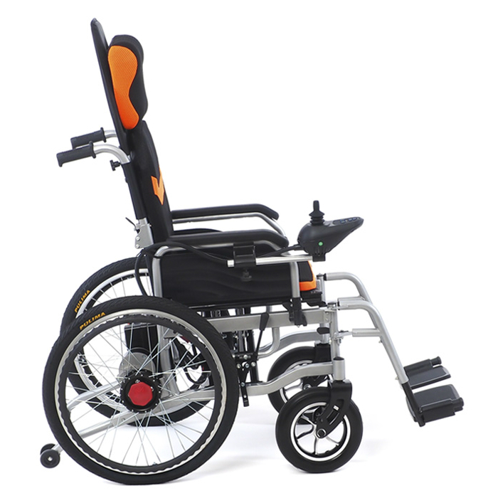Электроприводное кресло-коляска со съёмным удлинением спинки, которое позволяет использование лицами с повреждениями шейного отдела позвоночника и оправдает себя при наличии хороших прогнозов на реабилитацию. Съёмные задние колёса диаметром 530 мм оснащены приводными ободами для энергонезависимого перемещения.