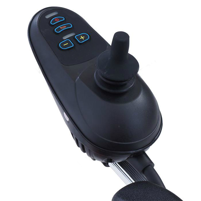 Кресло-коляска электрическое оборудовано задним приводом, реализованным в виде двух независимых электромоторов на безугловом редукторном соединении с ведущими колёсами. Такой тип электропривода наиболее надёжен и прост в обслуживании, так как достигается максимальная простота механических соединений.