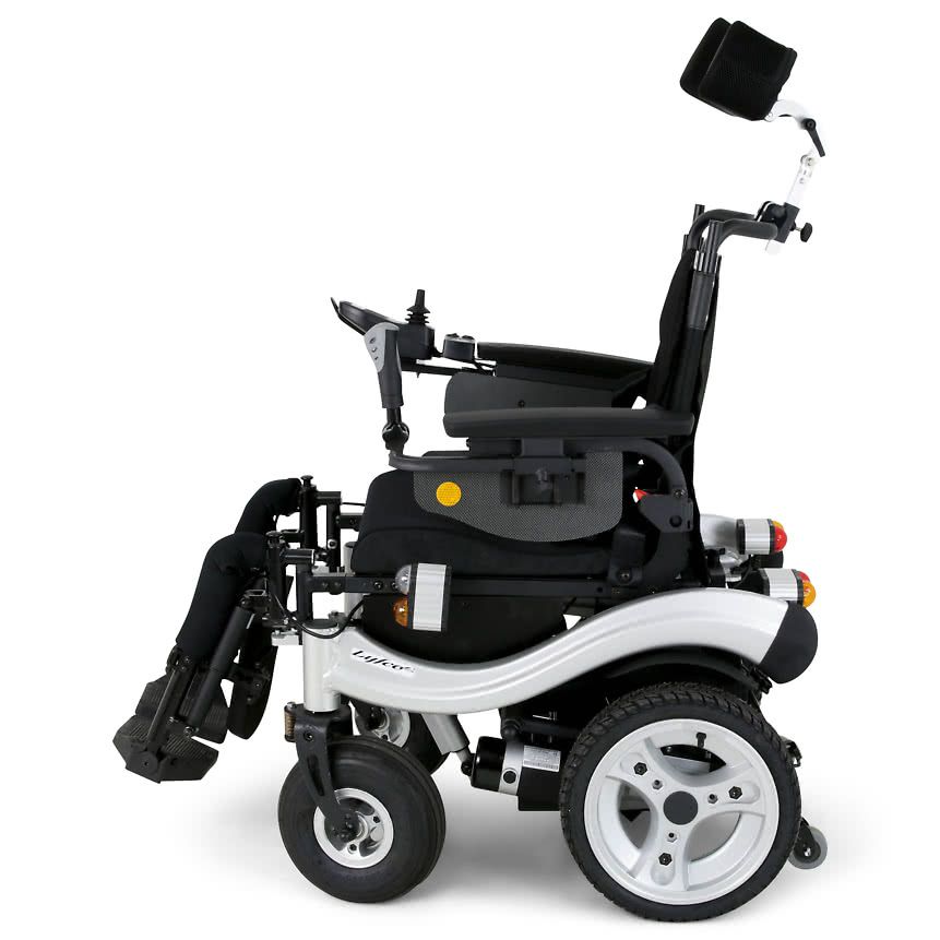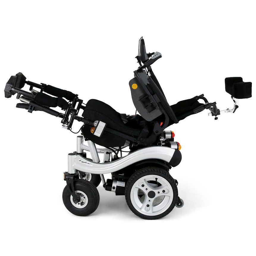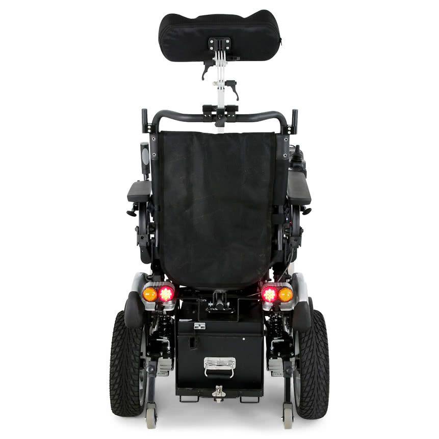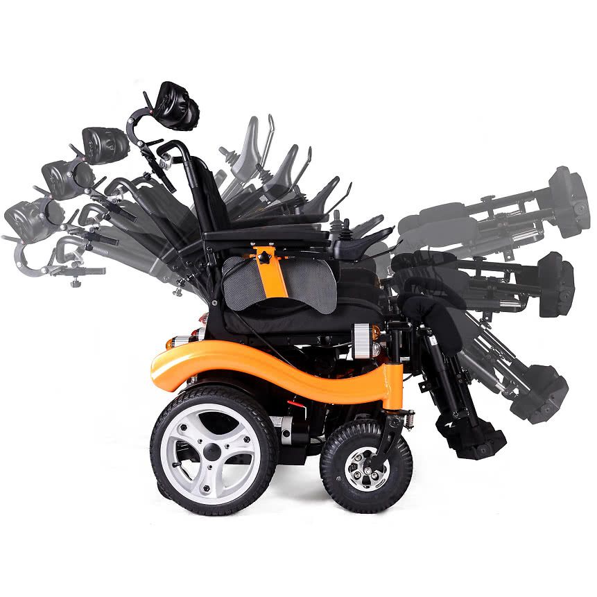 Электрическое кресло-коляска повышенной проходимости МЕТ ADVENTURE с моторами мощностью 500W и электро-регулировками позиционирования человека.