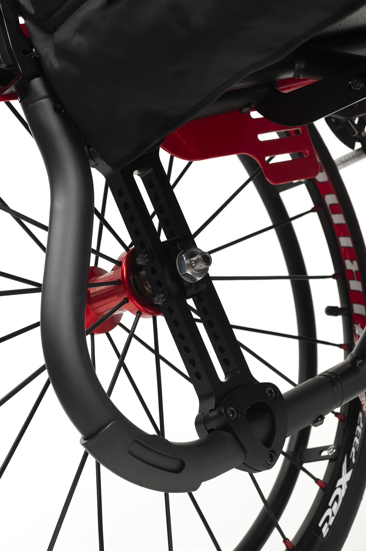 Уникальный адаптер заднего колеса обеспечивает широкий диапазон регулировки центра тяжести от пассивного до активного и высоты сиденья от земли. Наиболее интересной особенностью является функция регулировки развала от 0 ° до 6 °, и это уже идет в стандарте.