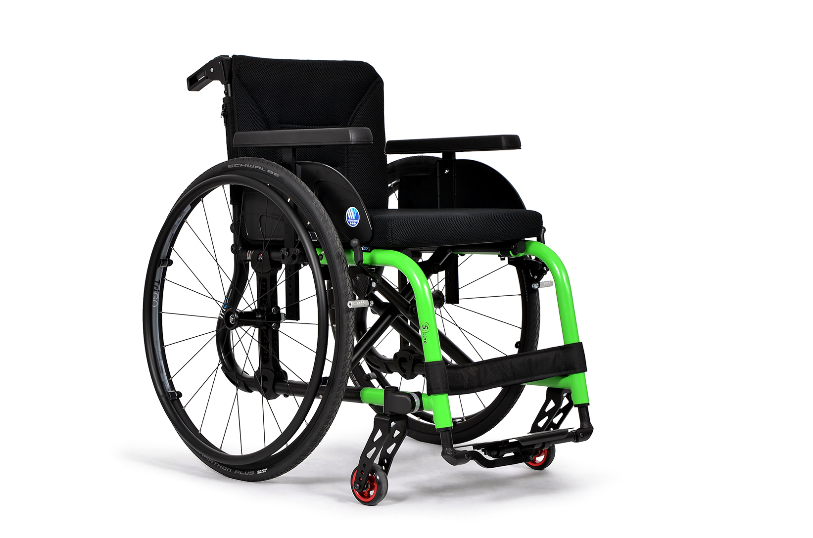 Версия коляски "Trigo S" более спортивная. Подножки встроены в раму, а выбор рамы с углом изгиба колена 80 ° создает ощущение, что вы едете на инвалидной коляске со спортивным захватом.