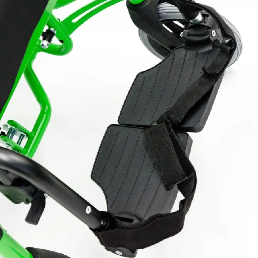 Коляска оснащена ортопедическими подножками, регулируемыми по высоте и углу подъема.