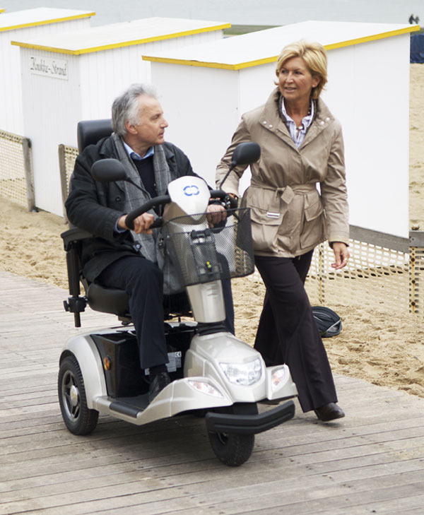 Скутер электрический оснащен комфортным вращающимся анатомическим креслом со съемным подголовником и опускающимися подлокотниками для удобной посадки и высадки пользователя. Спинку кресла можно отрегулировать по углу наклона. Данная модель электроскутера позволяет развивать скорость до 15 км/час и преодолевать расстояние до 45 км без подзарядки. Регулируемый блок управления позволяет оптимально настроить руль под пользователя. Скутер для инвалидов и пожилых людей оборудован удобным рулем в виде петли, что препятствует соскальзыванию рук пользователя. Дополнительно на электроскутер можно установить держатель для трости, ходунков или бутылки и багажный отсек. Модель укомплектована широкими пневматическими колесами, которые обеспечивают максимальную устойчивость и плавность хода. Для удобства посадки пользователя предусмотрен противоскользящее покрытие. Наличие разнообразных опций позволяет настроить электро скутер для пожилых и инвалидов максимально комфортно под физиологические особенности и потребности клиента.