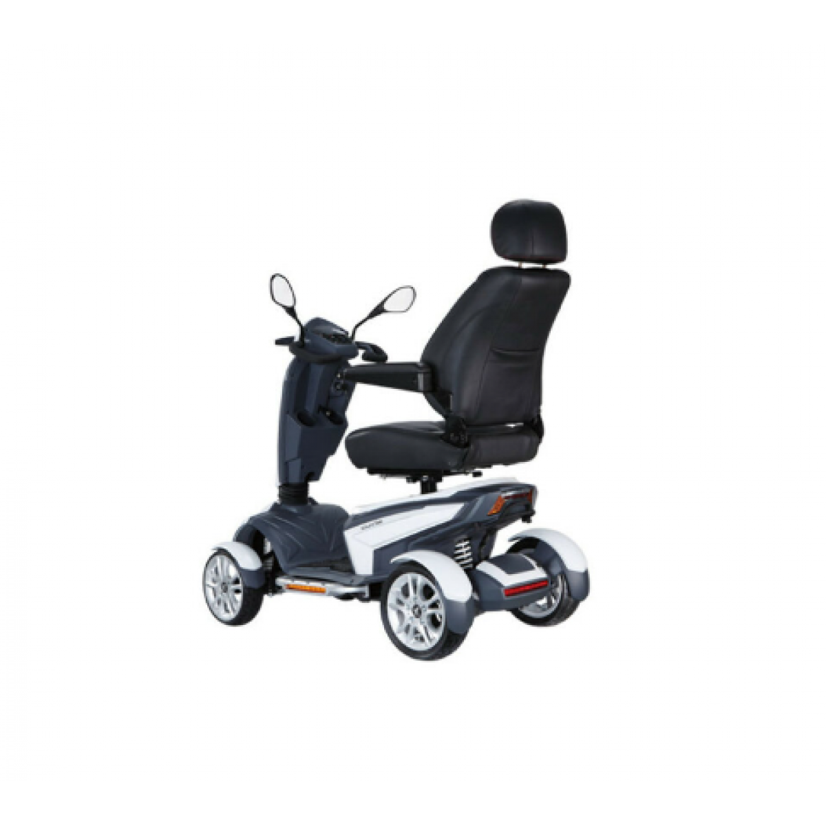 Скутер электрический оснащен комфортным вращающимся анатомическим креслом со съемным подголовником и поднимающимися подлокотниками для удобной посадки и высадки пользователя.
