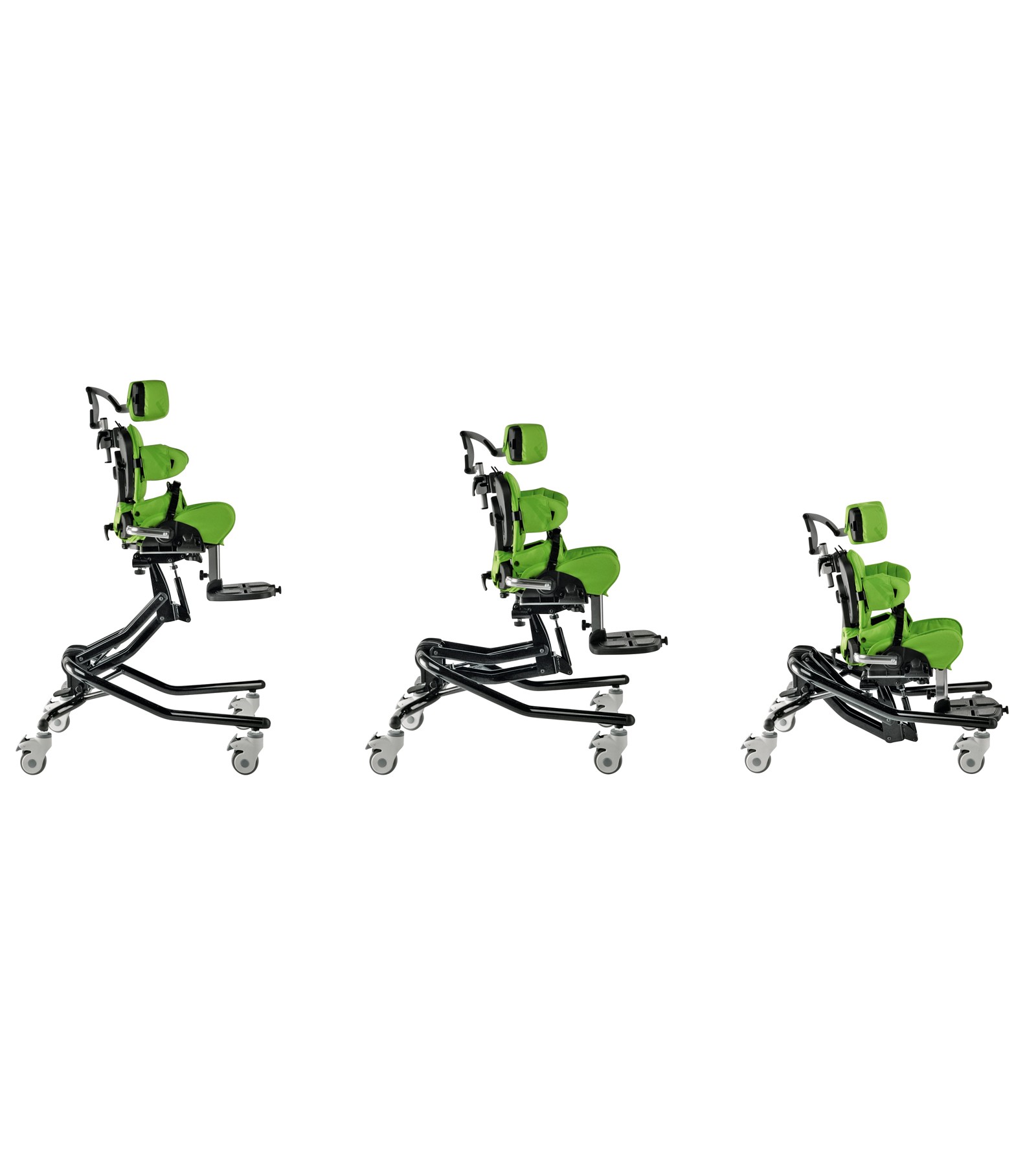 - Компактное и легкое шасси Hi-Low с регулировкой высоты дает возможность ребенку общаться на одном зрительном уровне с окружающими, а также снижает физическую нагрузку для взрослого.