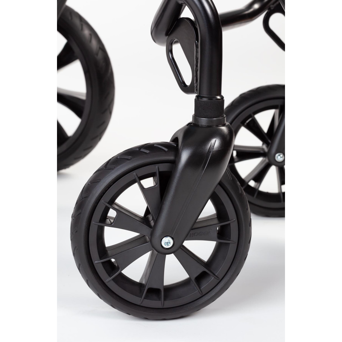 - Колеса полиуритановые, 5-спиц, с черным ободом, с барабанным тормозом, с функцией блокировки