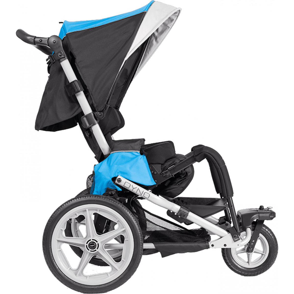 Коляска Dyno обеспечивает отличную стабилизацию верхней части тела пользователя. Боковые поддержки, пятиточечный ремень, жилет и ремни, стабилизирующие таз, обеспечивают правильную и комфортную транспортировку пользователя с сохранением пассивной коррекции дефектов осанки. Коляска Dyno предназначена как для решения повседневных задач, так и для помощи в занятии активным спортом, например бега. Это обусловлено конструкцией коляски с тремя колесами, что делает её более маневренной, большие колеса снижают контакт с неровной поверхностью на пересечённой местности и делают ход более плавным. Но главной особенностью коляски является конструкция динамического сиденья, жесткость отклика которого можно регулировать.