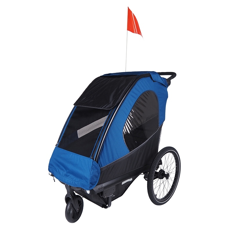 Коляску можно трансформировать в велосипедный прицеп, рассчитанный на одного ребенка. Вес ребенка, путешествующего в этом специальном устройстве, ограничен 22 кг.