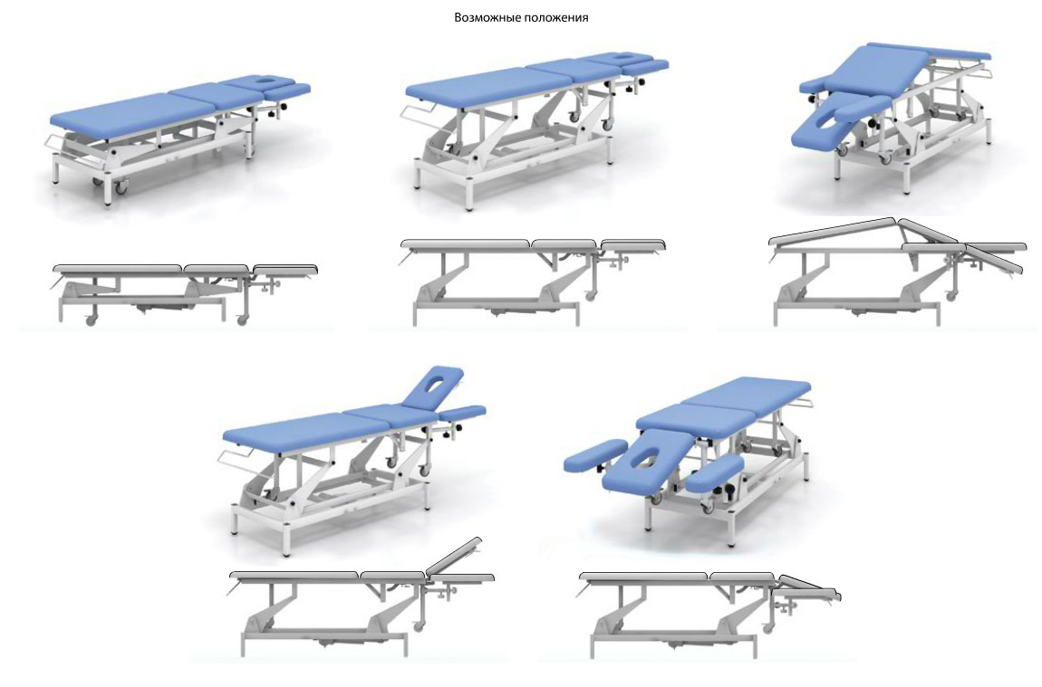 Стол массажный СН-52.01 COMFORT (регулируемая высота, электропривод) - трехсекционный массажный стол с подголовником, имеет электрическую регулировку высоты, регулировку подголовника от газовой пружины, механическую регулировку дренажного угла и подлокотников.