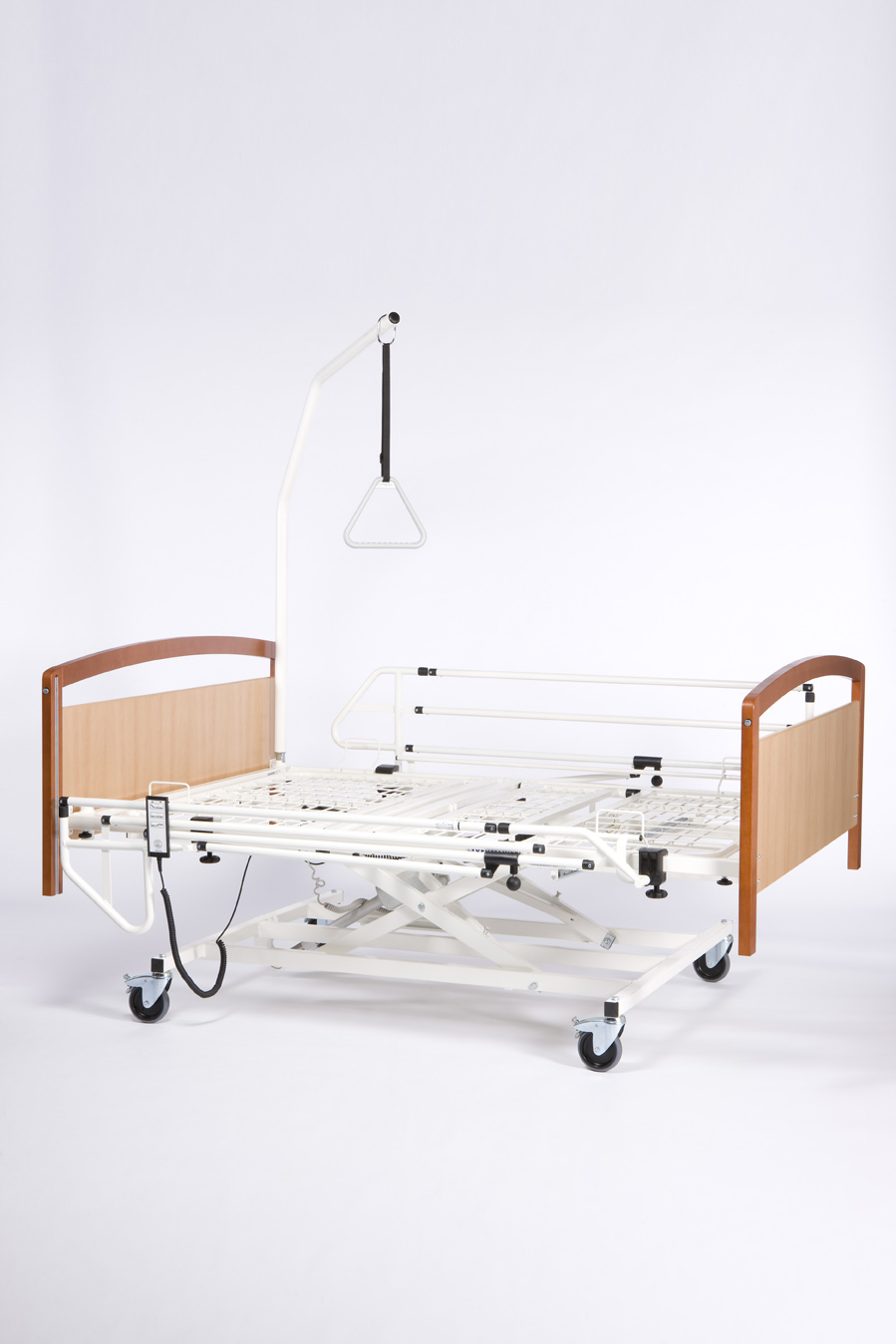 Кровать имеет широкое ложе 140 мм , электрически регулируемые секции. Кровать регулируется по высоте. Каждое из 4х колес оснащено отдельным тормозом. Это гарантирует устойчивость кровати.