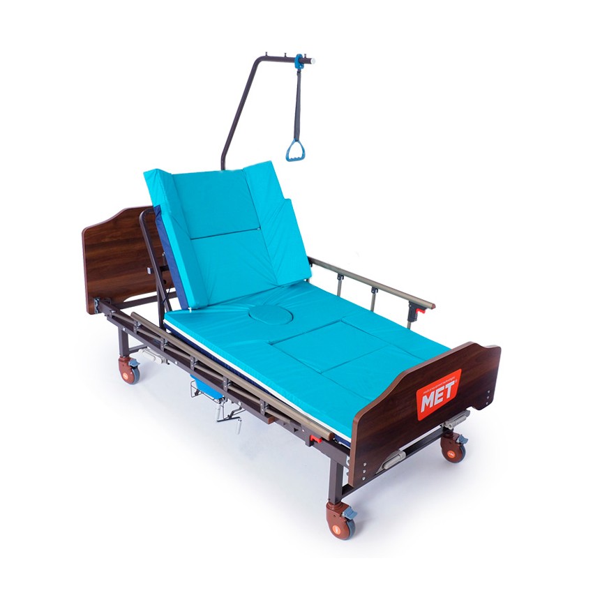 Трёхсекционная функциональная кровать MET KARDO с правосторонним туалетным устройством, интегрированным в основание ложа кровати. Довольно редкое техническое решение, позволяюще учесть особенности планировки помещения.