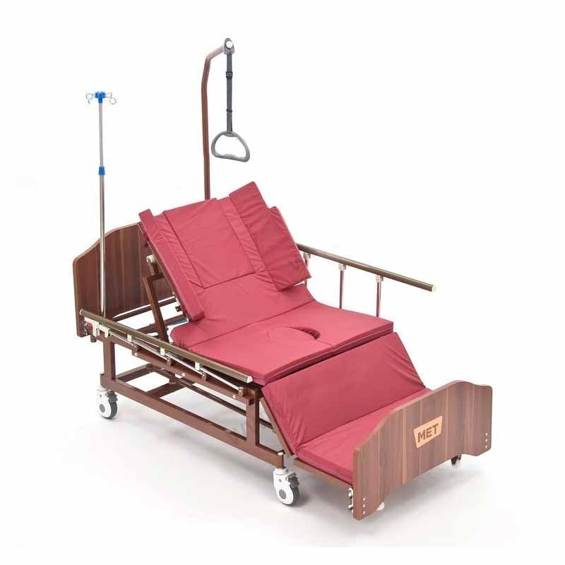 Медицинская кровать с функцией переворачивания, спинками из ЛДСП приятной "деревянной" текстуры, объединяющая в себе функции кардио-кресла и переворачивания больного с санитарным оснащением.