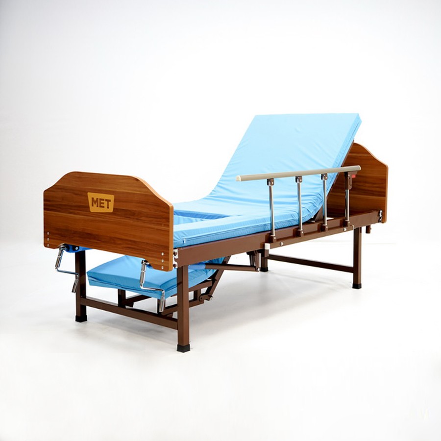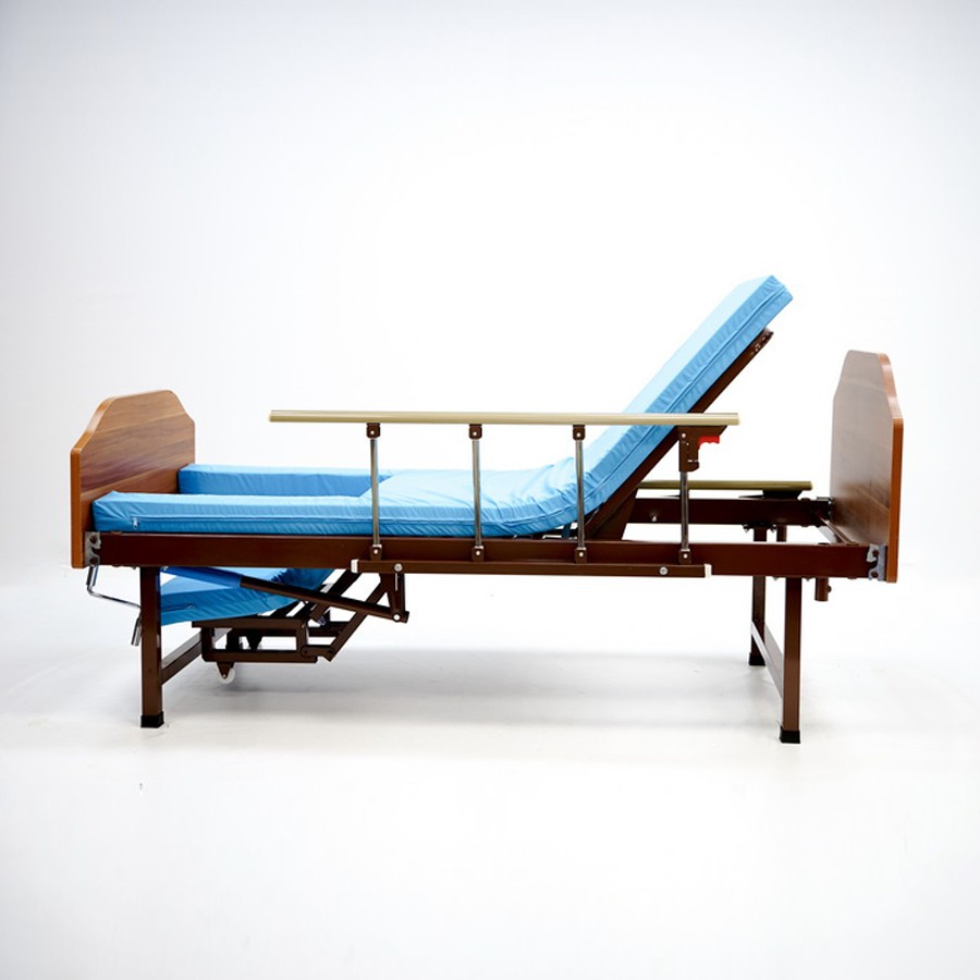 Недорогая четырехсекционная функциональная кровать-кресло с независимыми винтовыми регулировками угла наклона спинной секции и положения секций. Боковые ограждения в комплекте