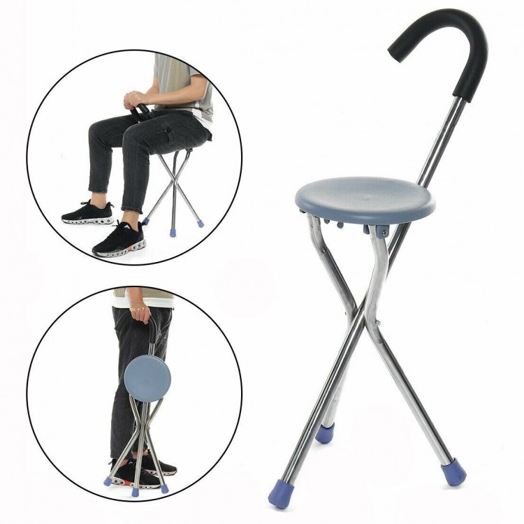 Трехопорная складная трость Ortonica TM601, оснащена сиденьем из прочного пластика.