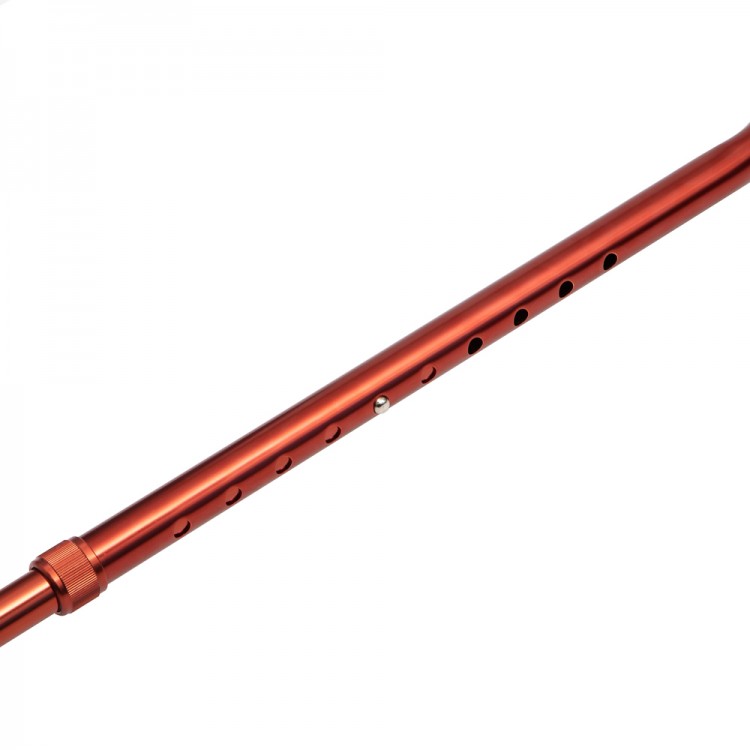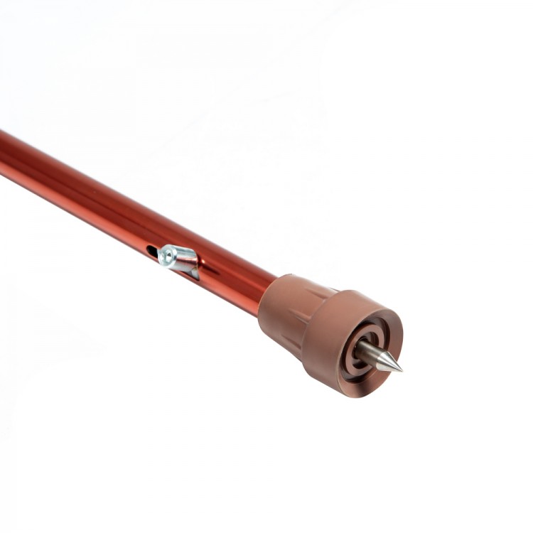 Основа трости телескопическая, подстраивается под рост пользователя легким нажатием на кнопочный замок, уменьшая нагрузку на суставы.