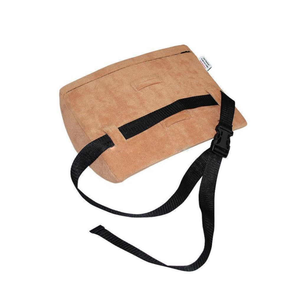 Продуманный задний профиль подушки и возможность вертикального крепления ремня позволяет ей хорошо «вписываться» практически в любое автомобильное сиденье.