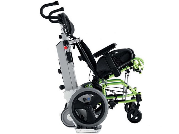 Поскольку устройство оснащено колёсами, оно может перемещаться по прямым, изогнутым и винтовым лестницам и клиновидным ступеням, не требуя при этом большого пространства для маневрирования.