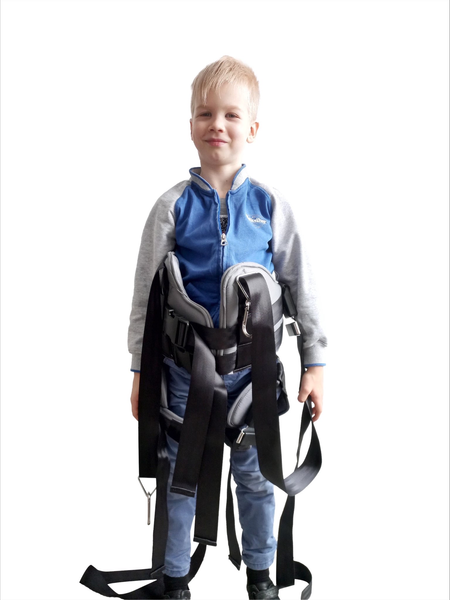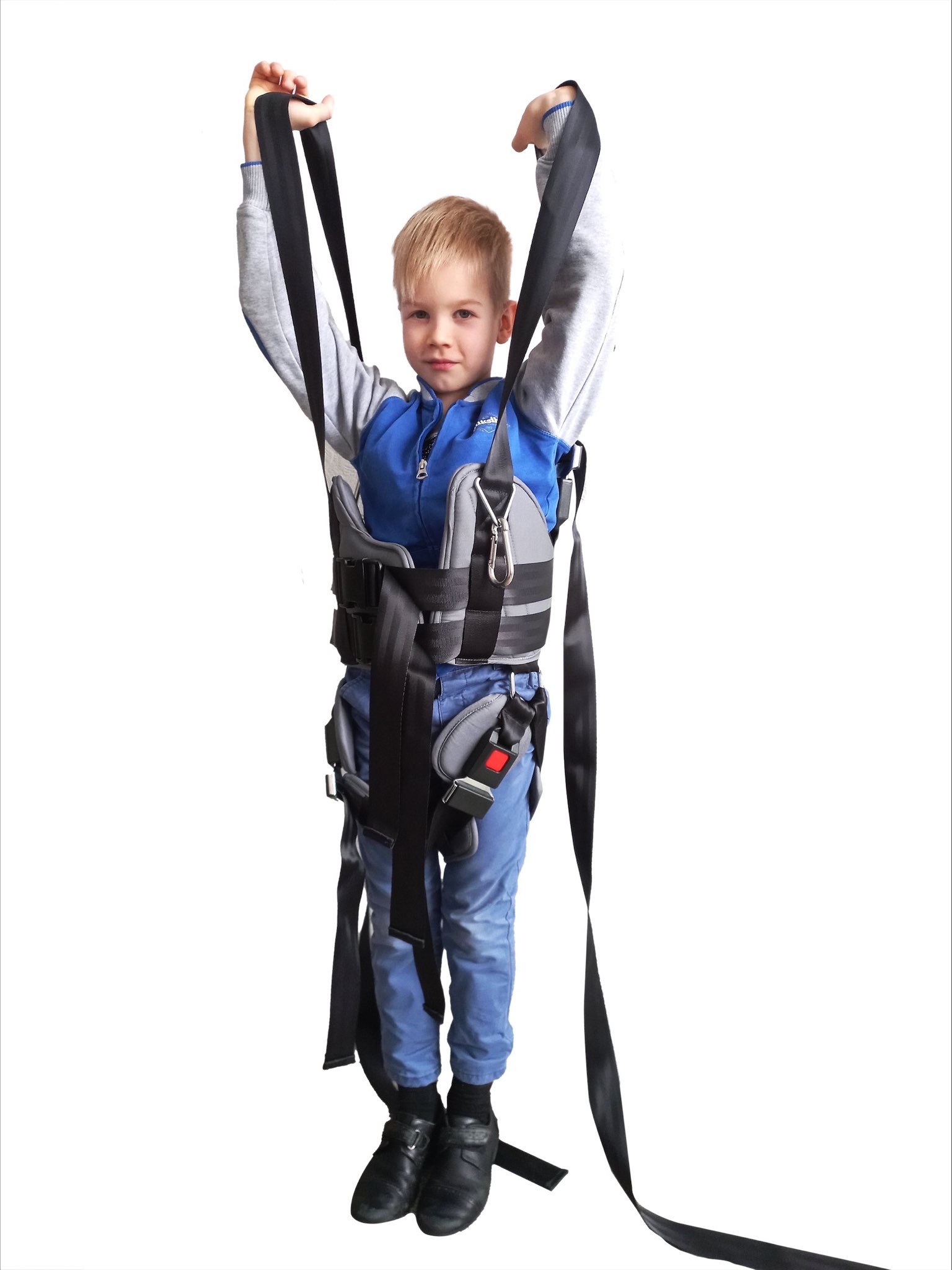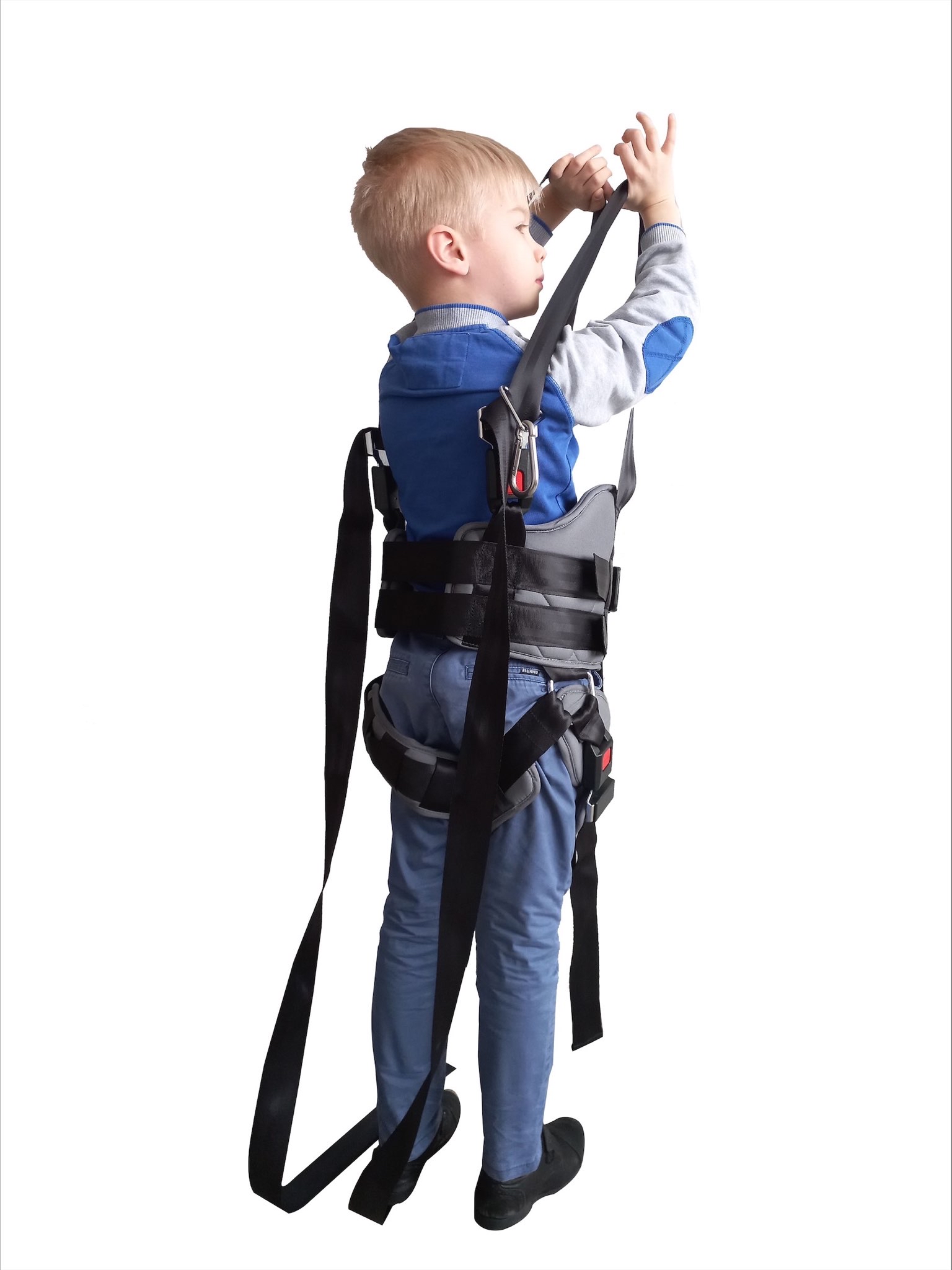 Жилет подвесной от American Motion Fitness предназначен для фиксации пользователей на беговых дорожках AMF с подвесом и на передвижных подвесах AMF при восстановлении навыков ходьбы. Наш универсальный жилет может использоваться для систем подвесов также и других производителей. Жилет могут использовать люди с весом до 100 кг! Прочные капроновые ремни и автомобильные автоматические замки ремней безопасности рассчитаны на повышенные нагрузки. Жилет комплектуется двумя карабинами для крепления к подвесу. Наш жилет может надеваться и сниматься самим пациентом без особого труда. На торсе тренирующегося жилет фиксируется спереди тремя быстросъемными застежками фастекс. Объем груди регулируется ремнями в широком диапазоне. Максимальная длина ремней от крепления верхнего карабина до уровня плеча пользователя составляет от 0 до 130 см, таким образом, жилет может использоваться для людей любого роста, а также на креплениях подвесов к потолку, стене и т.п. Для равномерно распределения нагрузки на площадь жилета он оснащен ремнями для обхвата бедер. Бедренные ремни также регулируются, имеют автомобильные быстросъемные замки. На фото ребенок 7 лет, рост - 128 см, вес ребенка - 24 кг, объем талии - 50см., объем груди - 55 см. С нашим жилетом тренировки станут комфортными и результативными!
