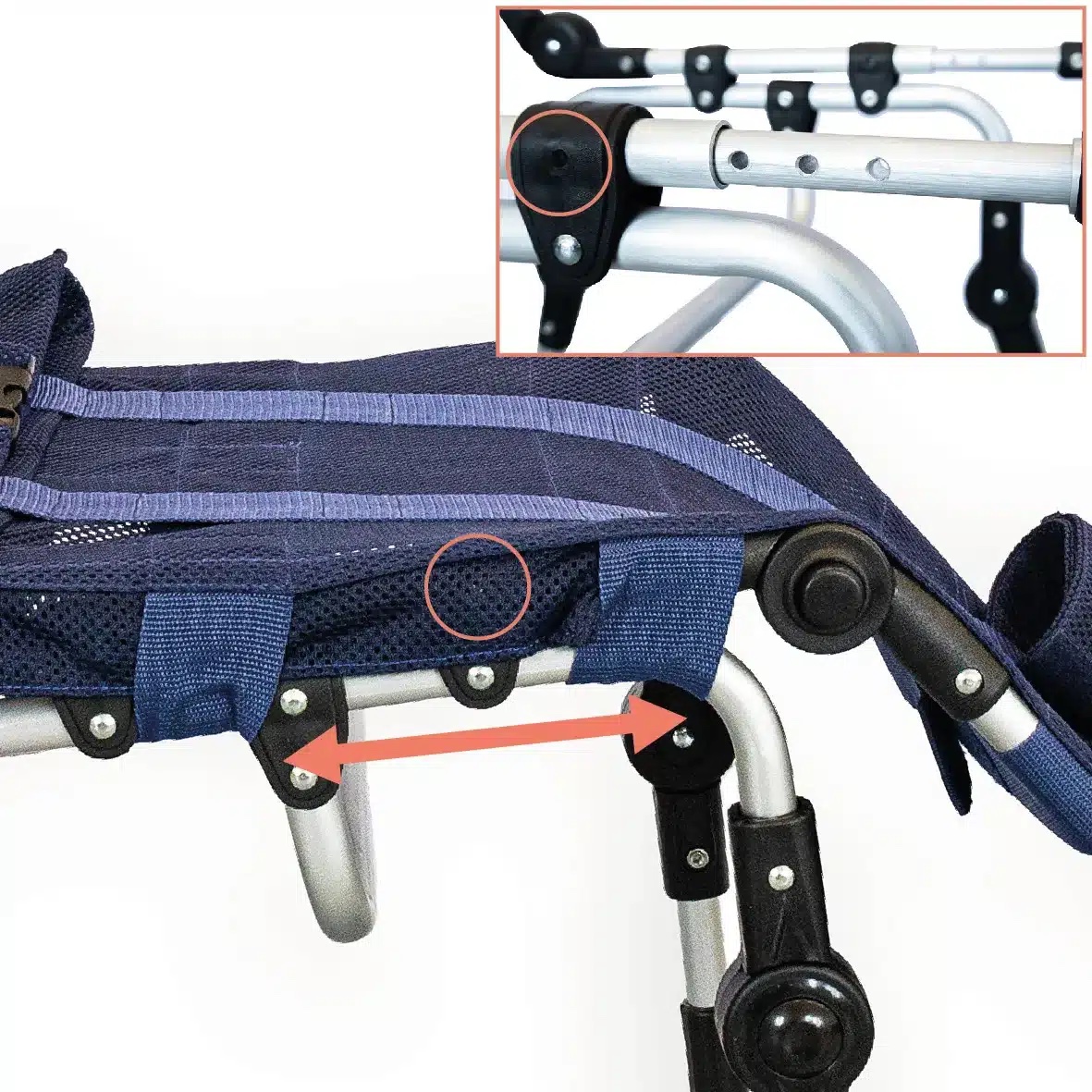Возможность регулировки отдельных сегментов шезлонга - угол наклона подголовника, угол наклона спинки и подножки в сочетании с возможностью регулировки высоты спинки и глубины сиденья позволяет оптимизировать положение ребёнка и адаптировать изделие к индивидуальным параметрам в указанном диапазоне