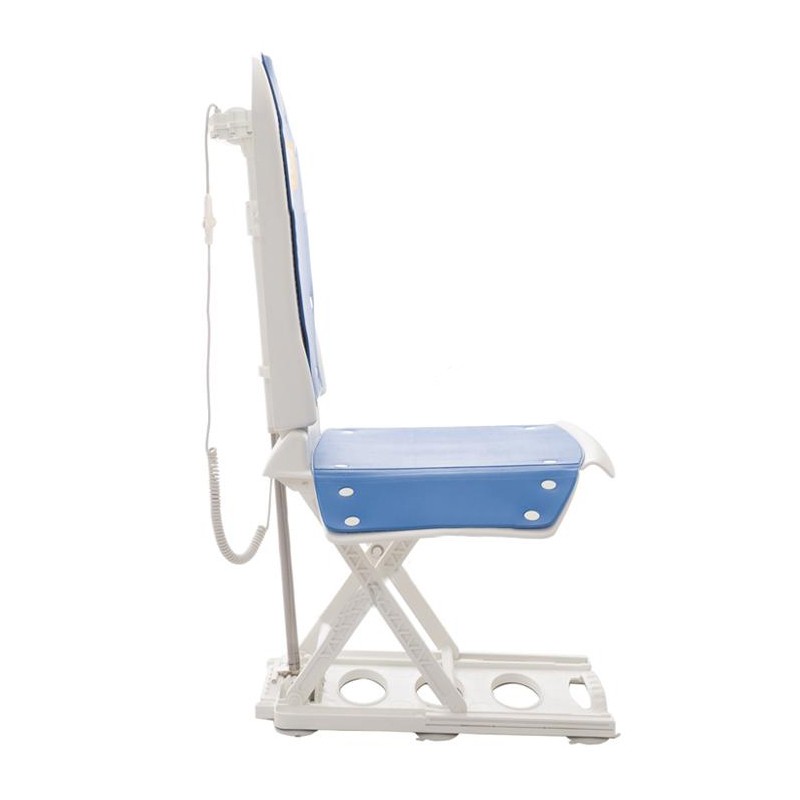 Облегчённый подъёмник для ванной, оборудованный герметичным пультом управления, работающий в диапазоне высоты сиденья от 8 до 48 см.