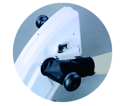 Вращать педали ног и рукоятки можно в прямом и обратном направлении. Тренажер комплектуется перчатками для фиксации кистей рук к рукояткам тренажера и специальными ремнями для закрепления ног на педалях велотренажера.