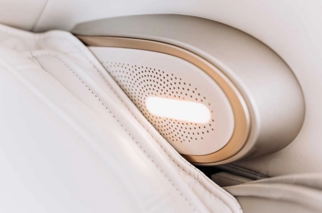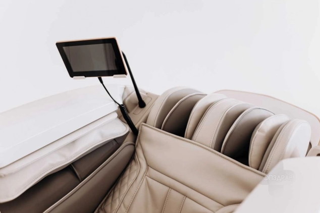 Массаж проводят двенадцать роликов, четыре из которых перемещаются по всей спине, включая ягодичные мышцы, а шесть роликов массируют ноги. Кресло можно управлять с помощью сенсорного планшета или джойстика, расположенного удобно под рукой.