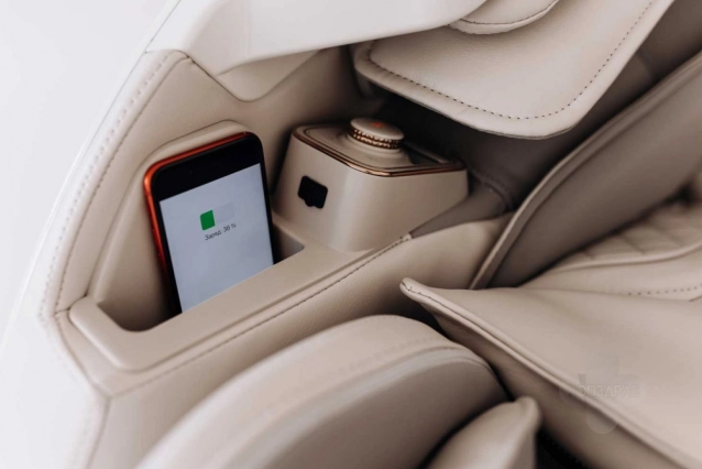 В кресле есть система прогрева мышц и автоматическая регулировка роста. Есть Bluetooth, стереосистема, беспроводная зарядка для телефона, USB-разъем и возможность подстраивать кресло под рост пользователя. Это преимущество над другими премиальными моделями (например моделей X и XI), у которых отсутствует капюшон, а цена выше.
