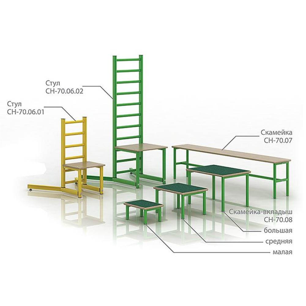 Стул является одновременно шведской стенкой, что позволяет использовать его не только для сидения, но и для выполнения специальных упражнений.