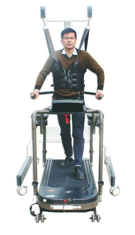 - Подвес оснащен электроприводом для разгрузки веса пациента. С его помощью на ноги и позвоночник тренирующегося можно снизить или полностью избавить от тяжести собственного веса.