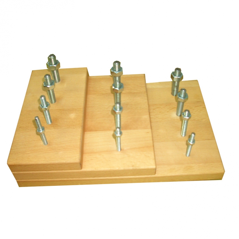 Представляет собой трехступенчатую панель из натурального дерева с 12 винтами винтами и закручивающимися гайками различного диаметра.
