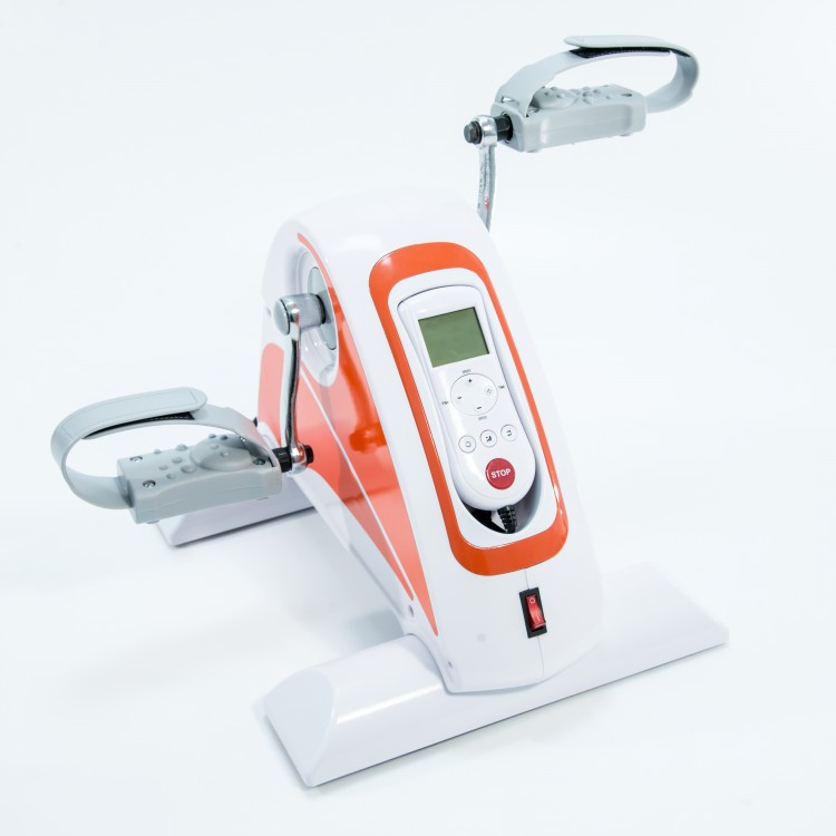 Педальный тренажер с электродвигателем предназначен для разработки верхних и нижних конечностей больных в период реабилитации или инвалидов. Тренажер используется для вращательных упражнений рук или ног. Педали в этом тренажере крутятся самостоятельно, тем самым заставляя ноги (руки) работать. Тренажер работает как в обычном режиме так и реверсионном (назад).