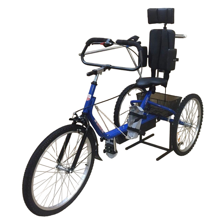 У модели PRO ряд допопций включен в базовую комплектацию: Вынос руля, широкое спецсидение, корзина. Усиленная рама собственной разработки. Задняя ось встроена в раму, меньшее сопротивление при занятиях на подставке дома. Более комфортная посадка педали расположены под углом менее 90 градусов, родительская ручка не совмещает управление рулем.Так же у модели облегченный ход, передаточное число 1:1, особенно это важно для детей с заболеваниями средней и тяжелой формы.