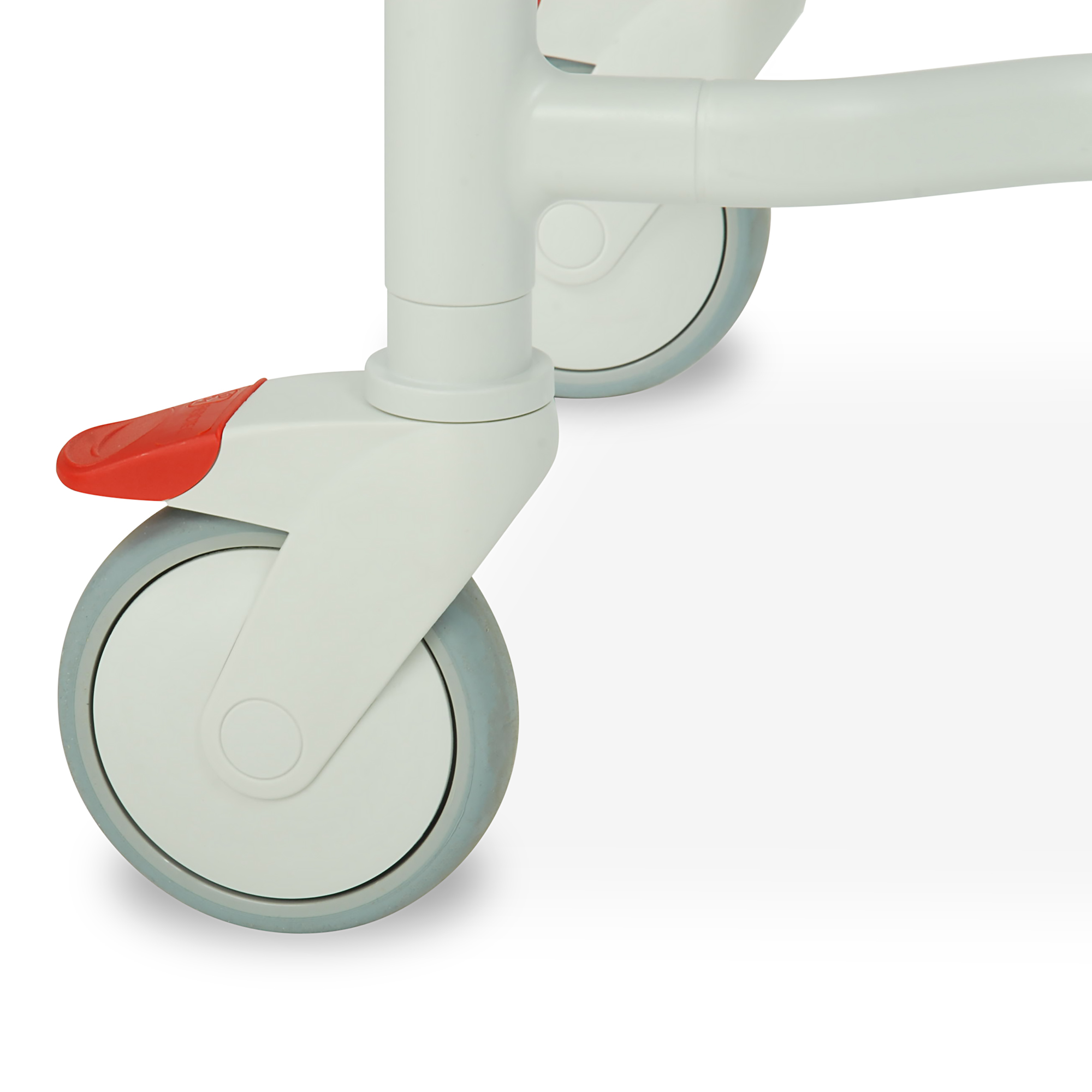 Каркас туалетно-душевого санитарно-гигиенического стула Бонн из сверхпрочного пластика TRB 3000 (запатентованная технология). Выдерживает нагрузку до 130 кг включительно. Опоры конструкции оснащены 5-дюймовыми колесами. На задней паре установлен стояночный тормоз с функцией фиксации. Спинка и сидение выполнены из высококачественного пластика. Спинка имеет эргономичное строение. В процессе эксплуатации данный вид пластика не деформируется и полностью безопасен для здоровья.