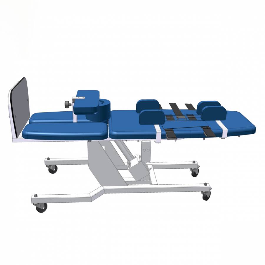 Вертикализатор поворотный СН-38.03.12 рекомендован больным в тяжелой стадии ДЦП, после перенесенных спинальных и черепно-мозговых травм, проведенных оперативных вмешательствах, после инсульта, а также после длительного пребывания в лежачем (горизонтальном) положении. Предназначен для осуществления плавного перехода человека из горизонтального в вертикальное положение и наоборот.Наклон осуществляется с помощью газовой пружины. Боковые упоры, ножной прижим и жилетка позволяют надежно фиксировать пациента.