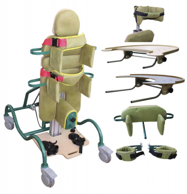 - широкие возможности регулировок, позволяющие адаптировать изделие ко всем пациентам с учетом антропометрических данных и индивидуальных особенностей; большие съемные регулируемые столы для различных видов вертикализации.